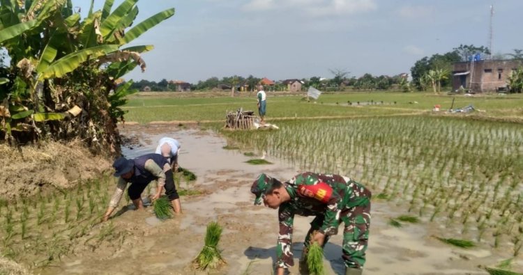 Dalam kegiatan tersebut, Sertu Nur Arifin terjun langsung ke sawah membantu petani memulai proses tanam padi. Pendampingan ini merupakan bentuk dukungan TNI AD kepada para petani guna meningkatkan produktivitas pertanian serta mendorong terwujudnya swasembada pangan.
