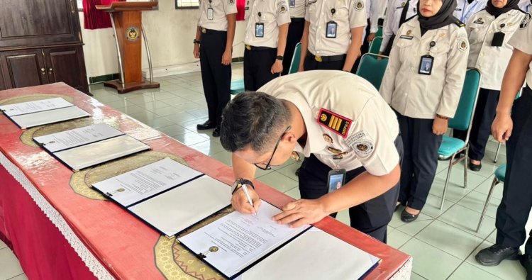 KUDUS - Jajaran pegawai Rumah Tahanan Negara (Rutan) Kelas IIB Kudus melaksanakan penandatanganan Deklarasi Perjanjian Kinerja Pegawai Kementerian Imigrasi dan Pemasyarakatan Tahun 2026. Kegiatan ini merupakan bagian dari penguatan komitmen kinerja dan profesionalisme aparatur dalam mendukung pelaksanaan tugas dan fungsi pemasyarakatan.