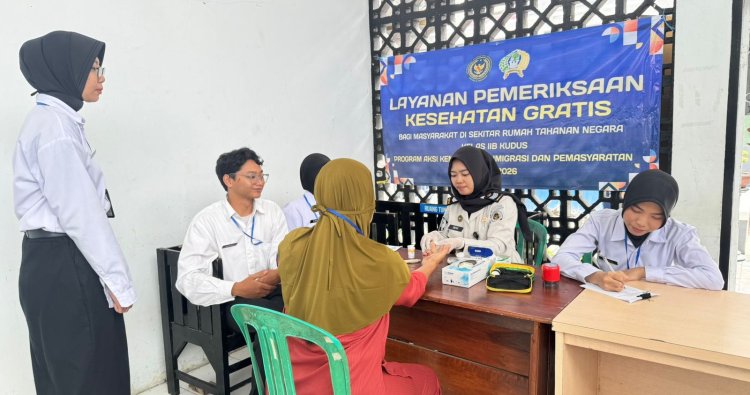 Kudus – Rumah Tahanan Negara (Rutan) Kelas IIB Kudus melaksanakan Layanan Pemeriksaan Kesehatan Gratis bagi masyarakat di sekitar Rutan, sebagai bentuk dukungan terhadap Program Aksi Kementerian Imigrasi dan Pemasyarakatan Tahun 2026, khususnya poin ke-13 tentang pelayanan pemeriksaan kesehatan gratis dan bakti sosial bagi masyarakat di sekitar UPT Imigrasi dan Pemasyarakatan, Selasa (13/01).